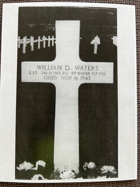 My uncle, 2nd Lt. William Dobson Waters 341 Bomb SQ, 97th Bomb GP (H), a fighter pilot in World War II, was shot down over Marseille, France 11/16/1943. Born and raised in Bridgeport, Ohio and attending Ohio State University, he and three of his fraternity brothers from chapter CHI PHI decide to leave school and join the war efforts. With over 75 training missions, 2nd Lt Waters substitutes for another crew member on his first bombing mission B-17 Flying Fortress, serial number 42-3147 (Homesick Angel). His plane is one of several aircraft on this mission. For some unclear reason, the lead plane’s bombardier selects the wrong target. The commander of the mission decides to try for a second attempt at the target. The second run is at the same altitude as the initial attempt, a deadly mistake. The plane is hit and the left waist gunner parachutes, as the plane plunges into Lake Lavalduc. The gunner survives and spends the rest of the war in Stagluft 13, a German prison camp. My uncle resides in a grave at Rhone American Cemetery, Draguignan, France.