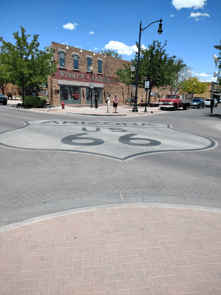As we pass through Winslow, made famous by the iconic Eagles song, I can’t resist the urge to stop and soak in the nostalgia of this charming town. Standing on the corner, I appreciate the simple beauty of the moment, surrounded by the timeless allure of Route 66.