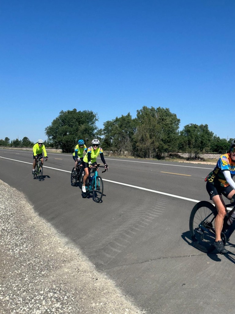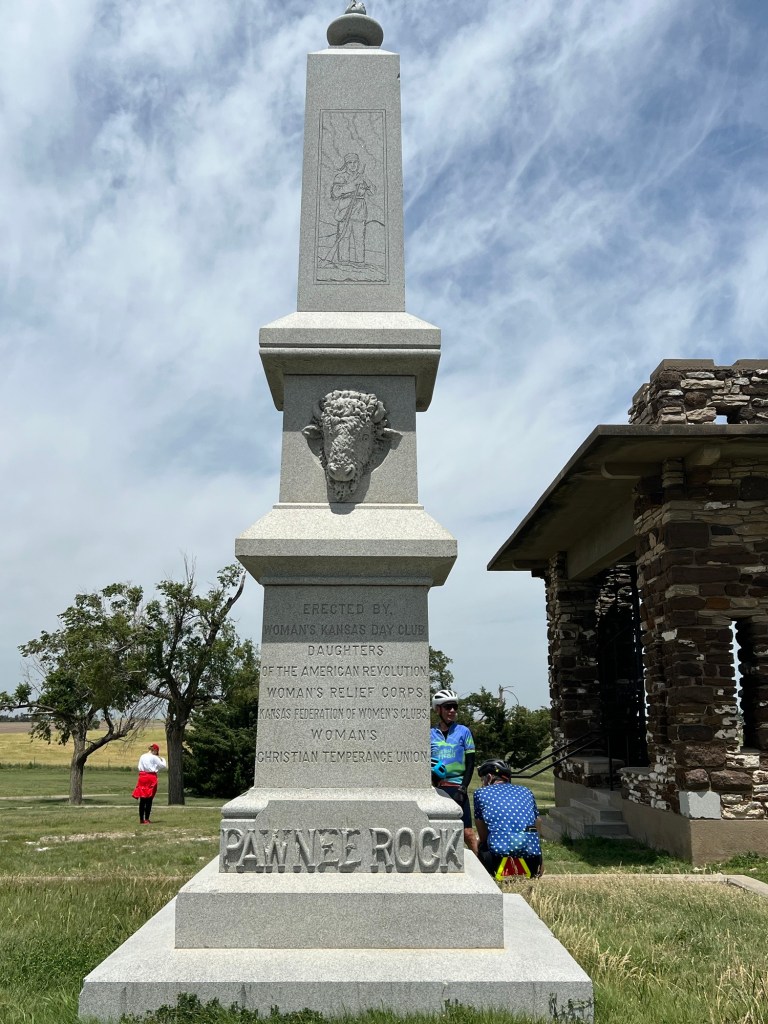 Today’s journey took us 83 miles along Route 56 from Dodge City to Great Bend, Kansas. It was a day of contrasts, from the endless wheat fields and railroad tracks to the towering silos and semi-trucks that seemed to accompany us at every turn. As we pedaled through this iconic American landscape, we encountered numerous tributes to veterans and freedom, reminding us of the deep-rooted history and patriotism of the heartland.