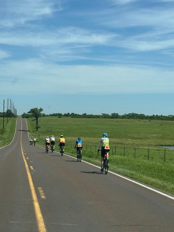 Cycling along the back roads, we were treated to the picturesque scenery of rolling hills that seemed to stretch endlessly. Fields of buffaloes dotted the landscape, a majestic sight that added to the sense of connection to America’s heartland. American flags waved proudly in the breeze, symbolizing the unity and patriotism that resonate throughout this region. Passing numerous silos, I was reminded of the agricultural backbone that sustains so many communities here. The simplicity and beauty of the rural landscape provided a peaceful backdrop for reflection on the journey so far.
