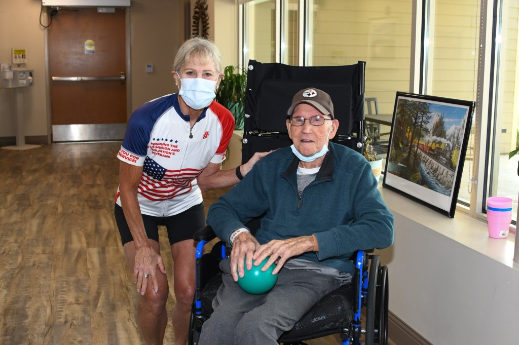 Karen O’Neal, head of Civic Engagement at Erie VA, introduced us to Al, a 108-year-old Army veteran residing at the VA hospital in Erie, PA. As the 12th oldest person in the United States and a World War II veteran, Al spoke eloquently about his life and service. He shared his pride in serving our country. He was at D-Day in Normandy and asked about the flags flying across the nation and the friendliness of people. His humility and positivity were truly inspiring.