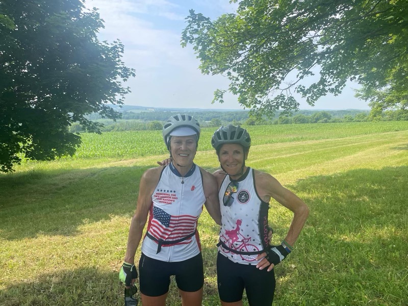 Upon arriving at our hotel, I was thrilled to be greeted by my long-time friend from St. Clairsville, Jennifer Christy. Despite the intense heat, we celebrated our journey at the second SAG stop and later headed to dinner overlooking the Hudson River, reflecting on our incredible day.