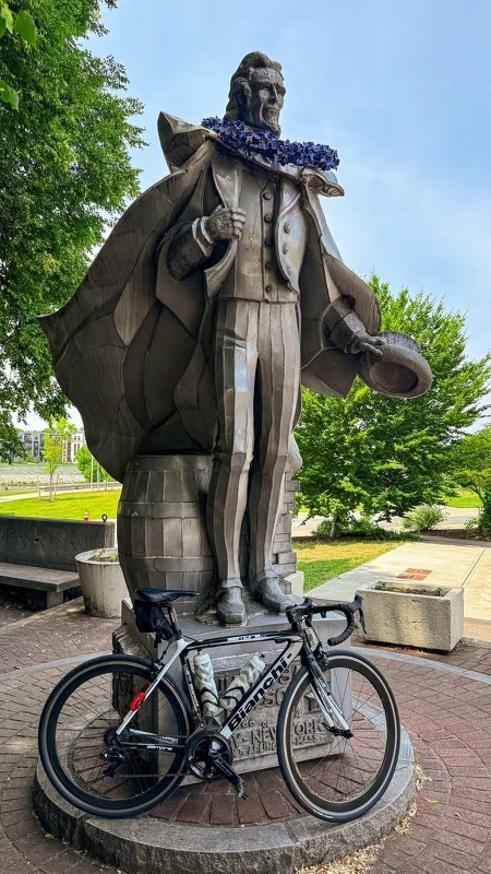 Today we cycled 102 miles in scorching 95-104 degree weather. We set off at 6:45am, with somewhat overcast skies until we reached the Erie Canal Trail. The last 20 miles were a refreshing change as we rode on the Mohawk Hudson Bikeway, providing a much-needed break from cycling beside cars. Along the way, we passed the iconic Uncle Sam statue in Troy, New York, a fitting reminder of the American spirit.
